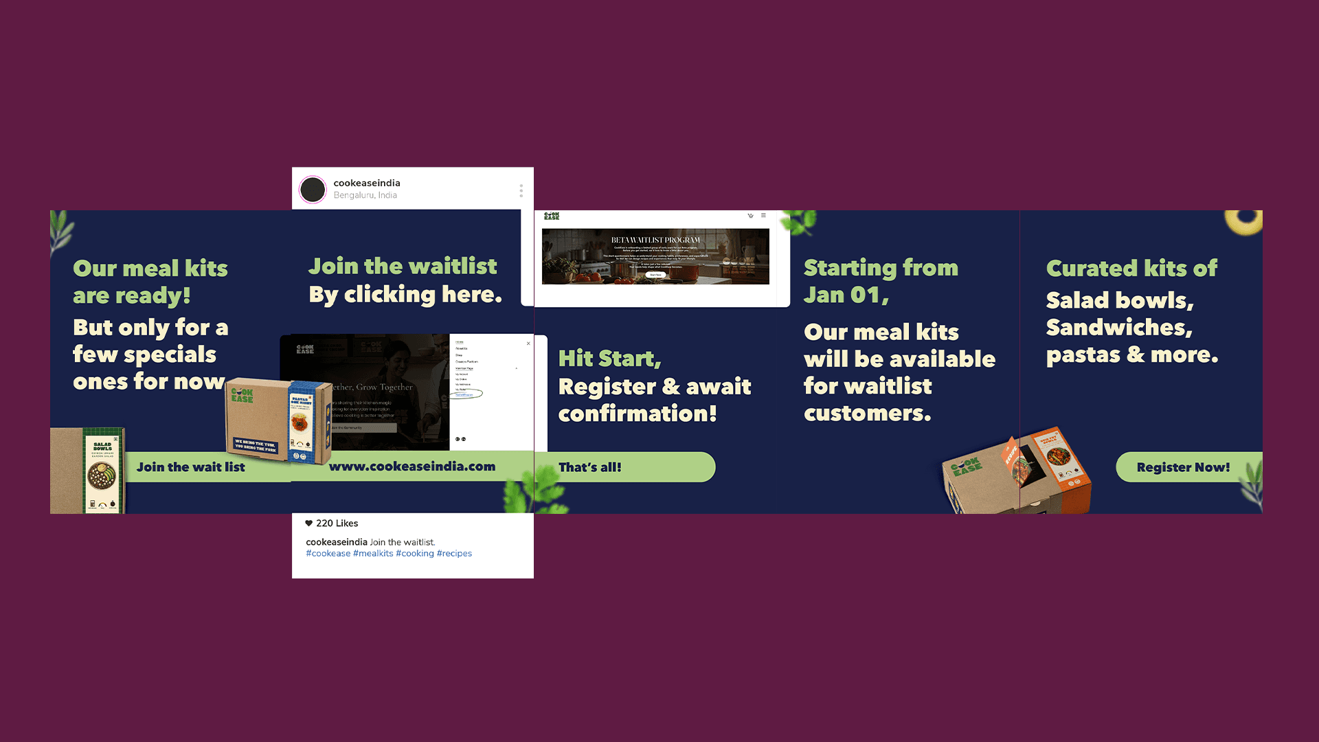 CookEase is an Indian food-tech startup that delivers meal kits to its customers, enabling them to cook their favourite meals without over-buying groceries or spend hours cleaning, chopping and doing other prepping activities. CookEase came to us a week before launching their website for the beta program and we jumped in to do what was needed for them to gain their beta users.